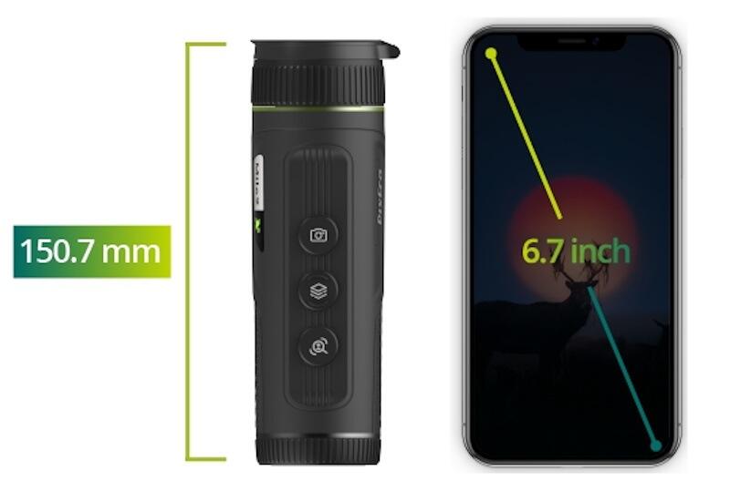 - Direkte WiFi-transmission af billeder til din smartphone ved hjælp af Pixfra Outdoor-appen. Og mulighed for at justere monokularen, tage billeder eller optage termisk video direkte fra telefonen.